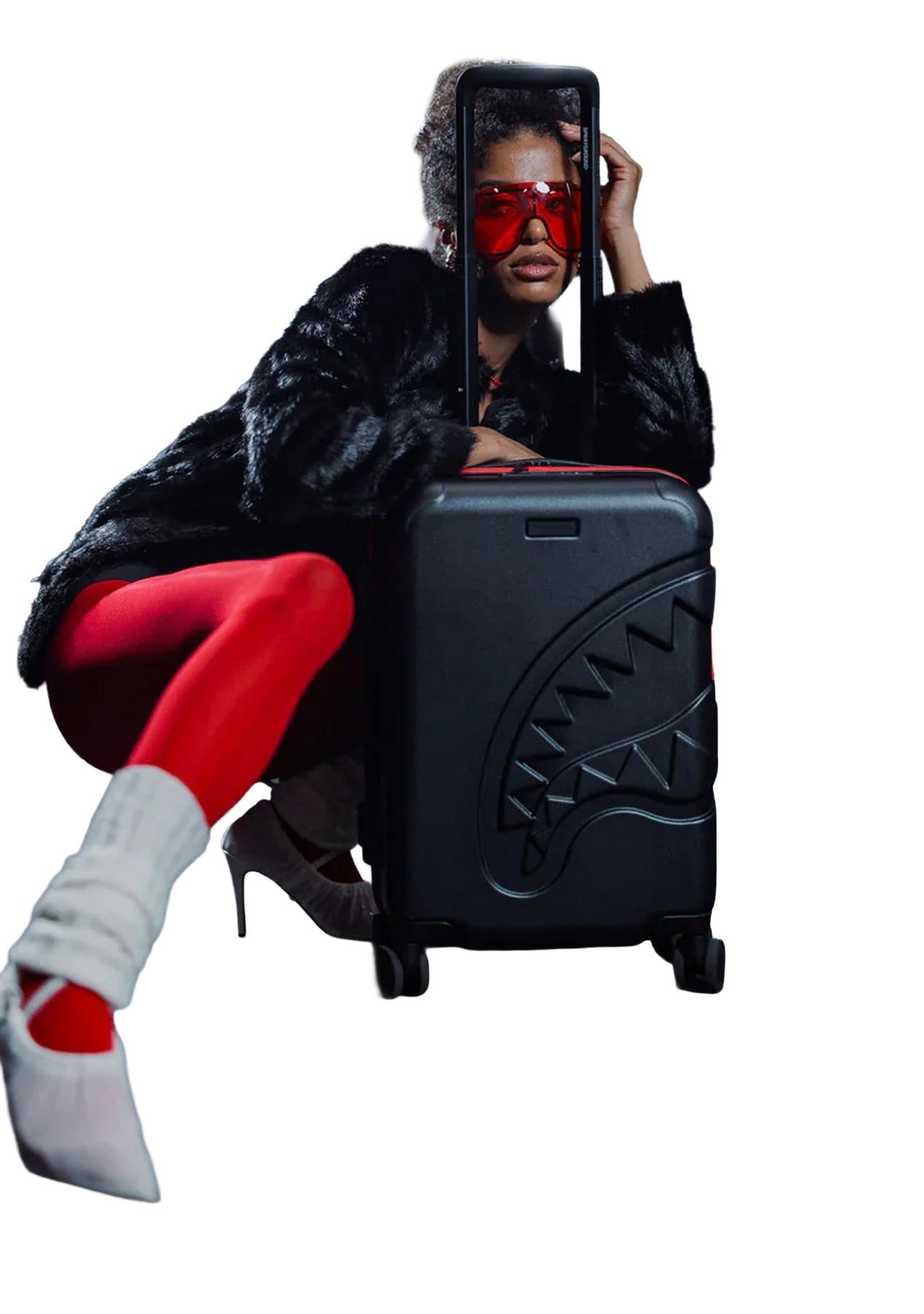 SPRAYGROUND PRINTED ZIPPER SHARK CARRY-ON LUGGAGE
