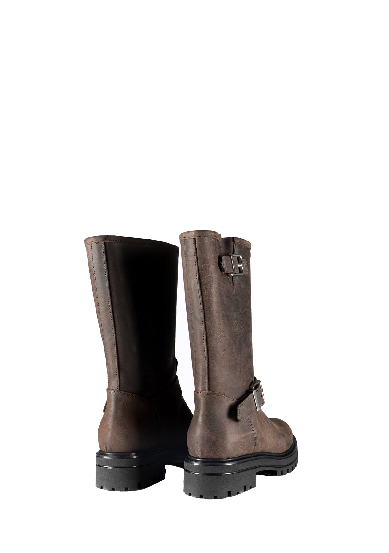 Stivale modello biker in pelle con gambale largo.