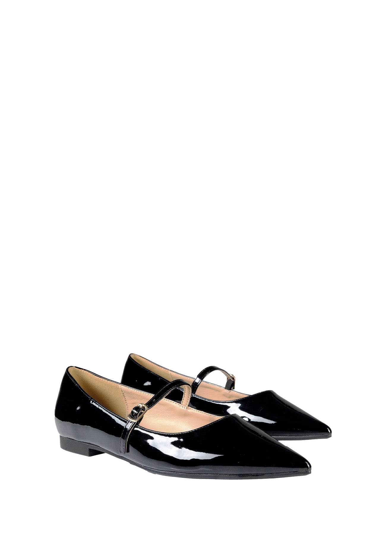 Ballerina a punta con cinturino realizzata in vernice nera,