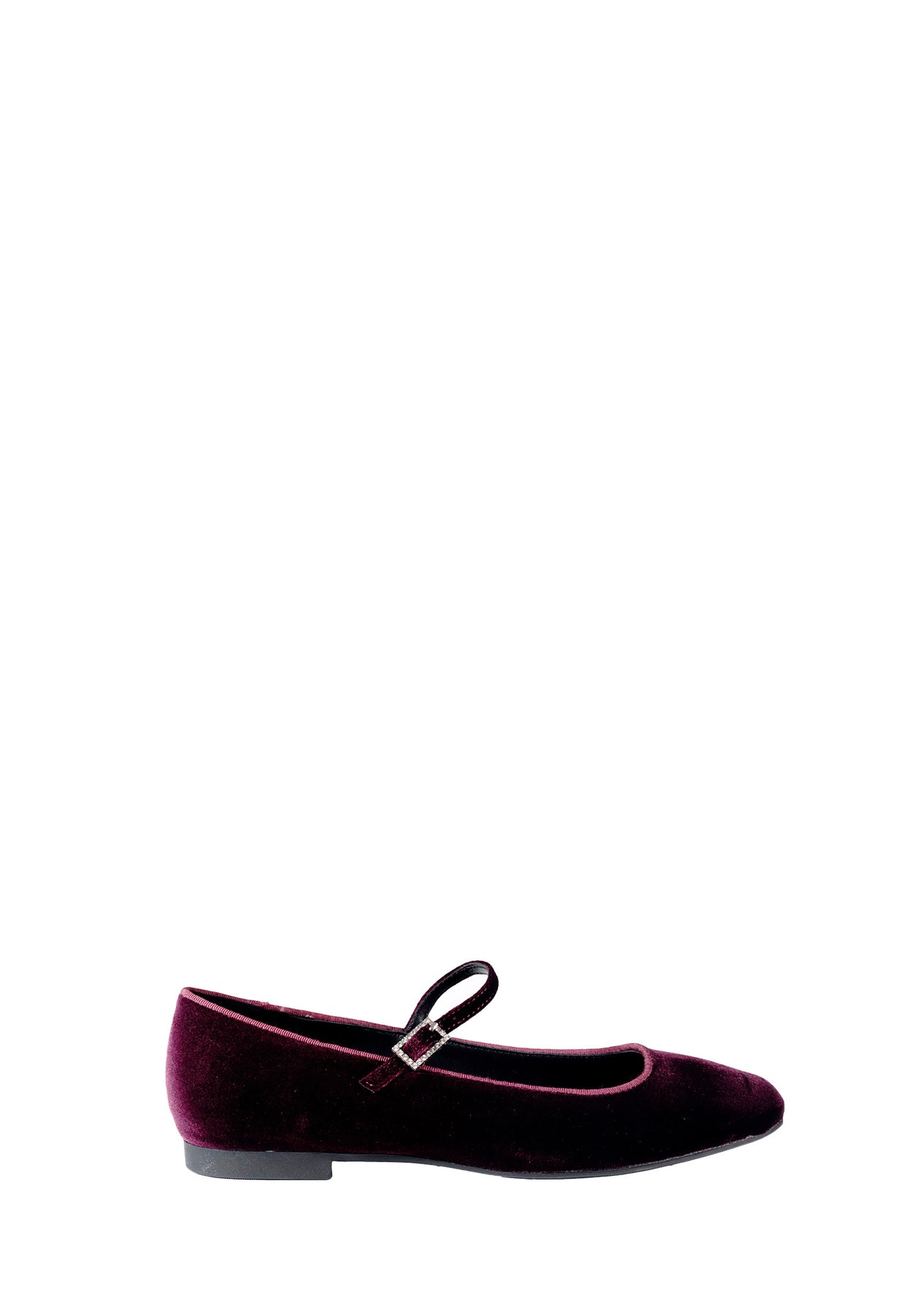 Ballerina a punta quadra in velluto con fibbia gioiello e cinturino,