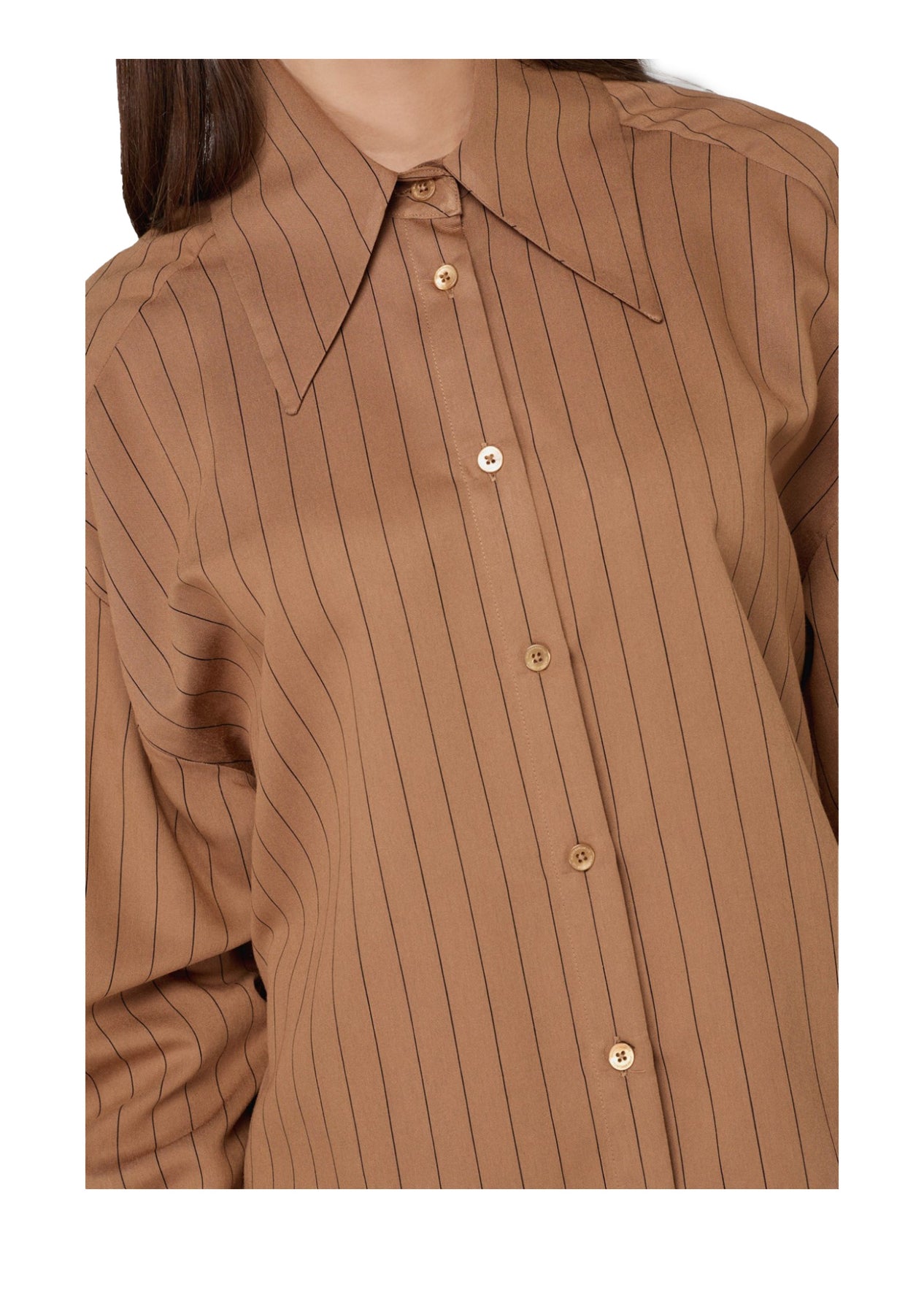 MAR DE MARGARITAS Camicia Donna ROSITA Oversize Gessata Cammello