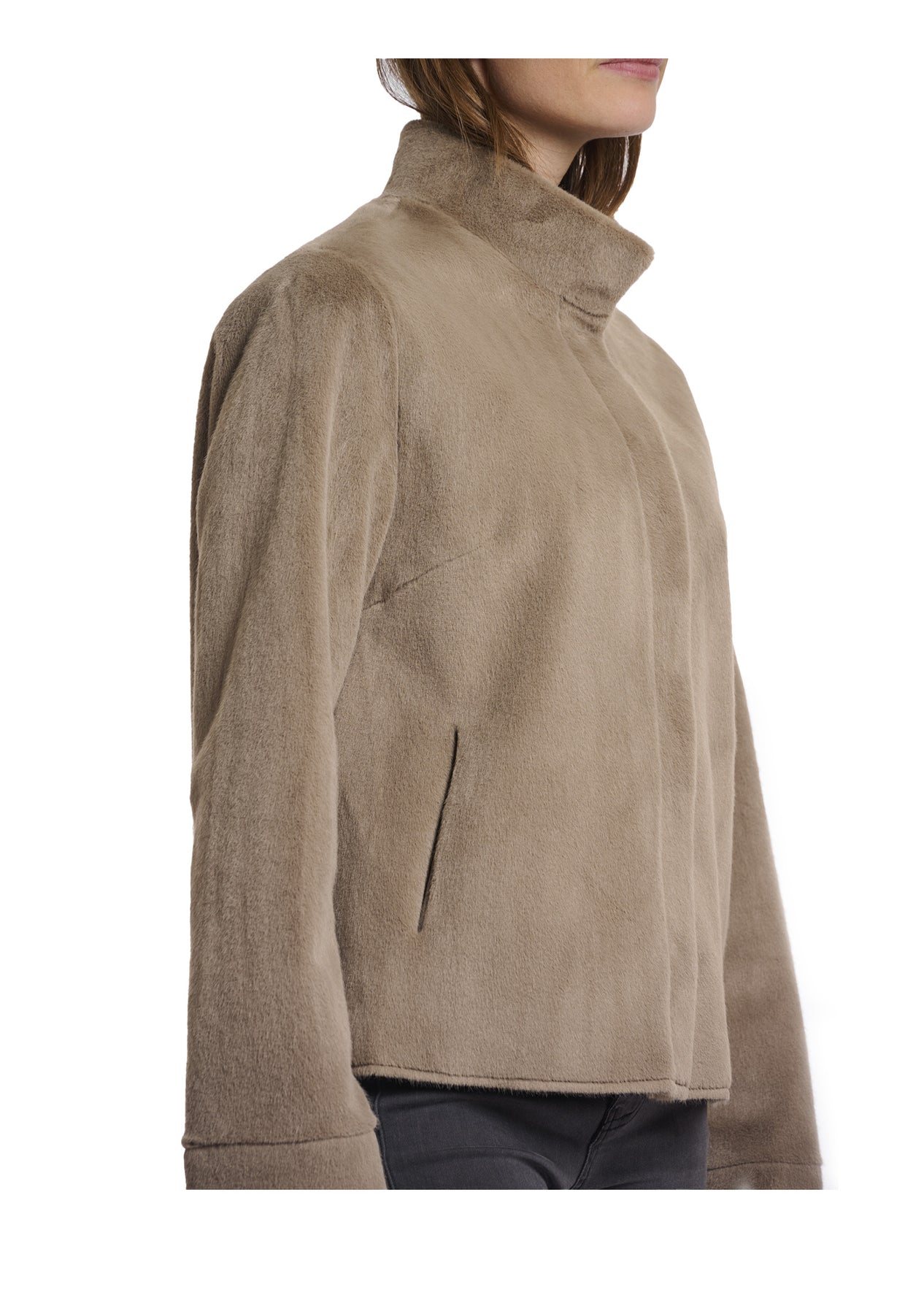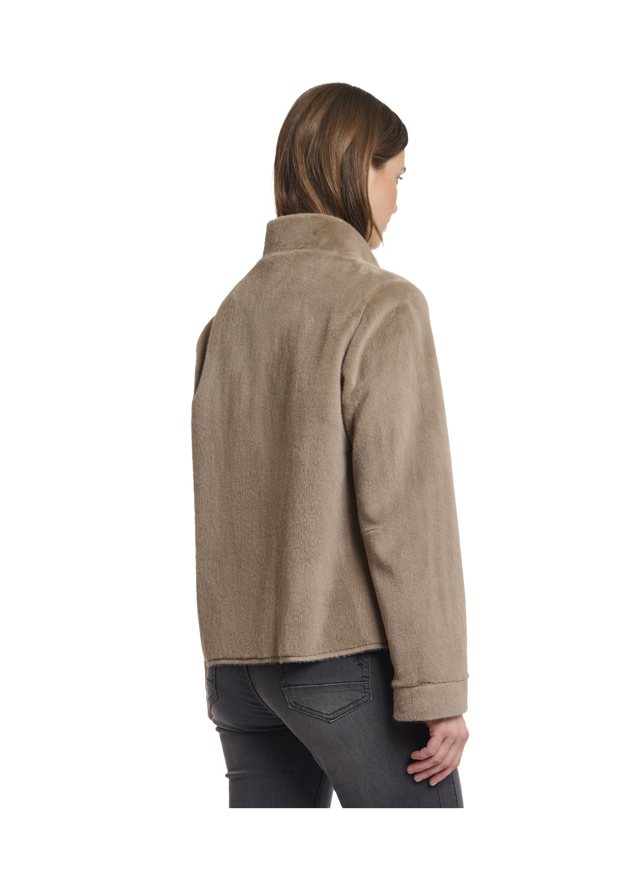 Giacca corta in pelliccia sintetica con morbida fodera in finta pelle scamosciata.