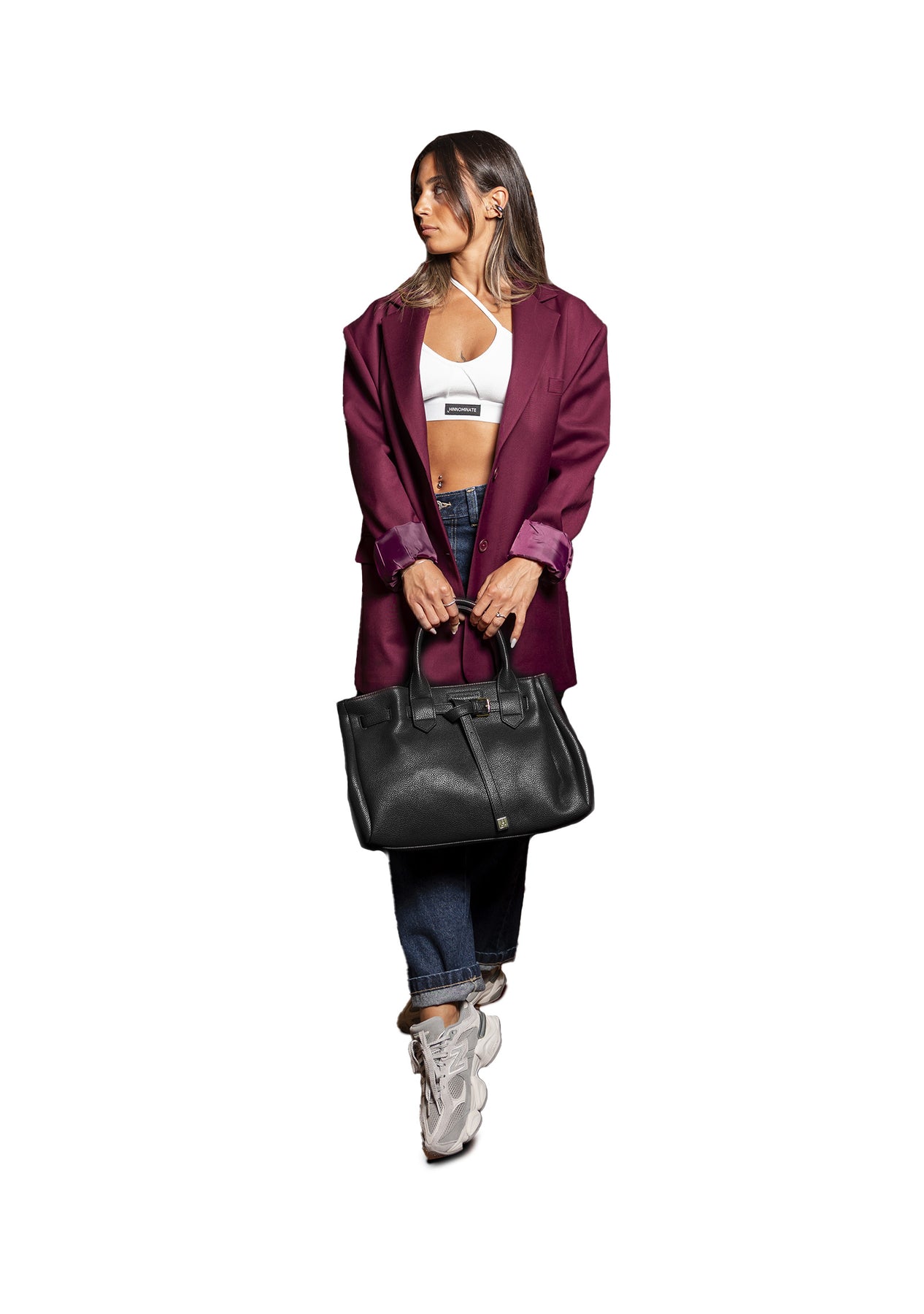 Borsa media In Ecopelle con Fibbia In Metallo e patch logata cucita tono su tono.