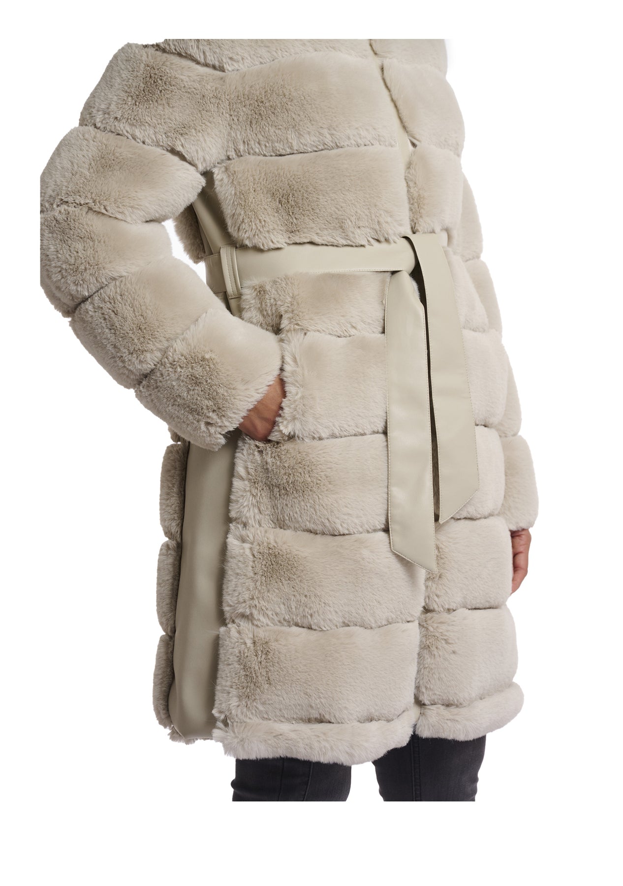 in pelliccia sintetica con dettagli in similpelle.
