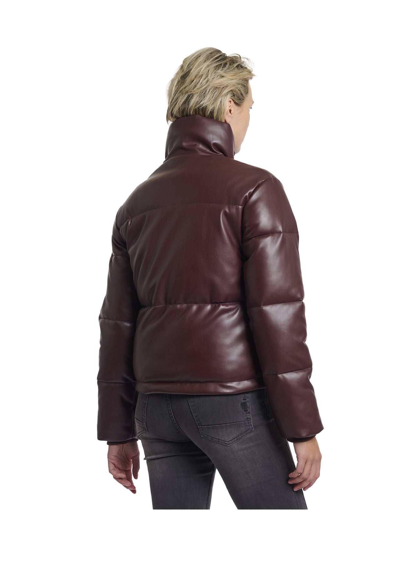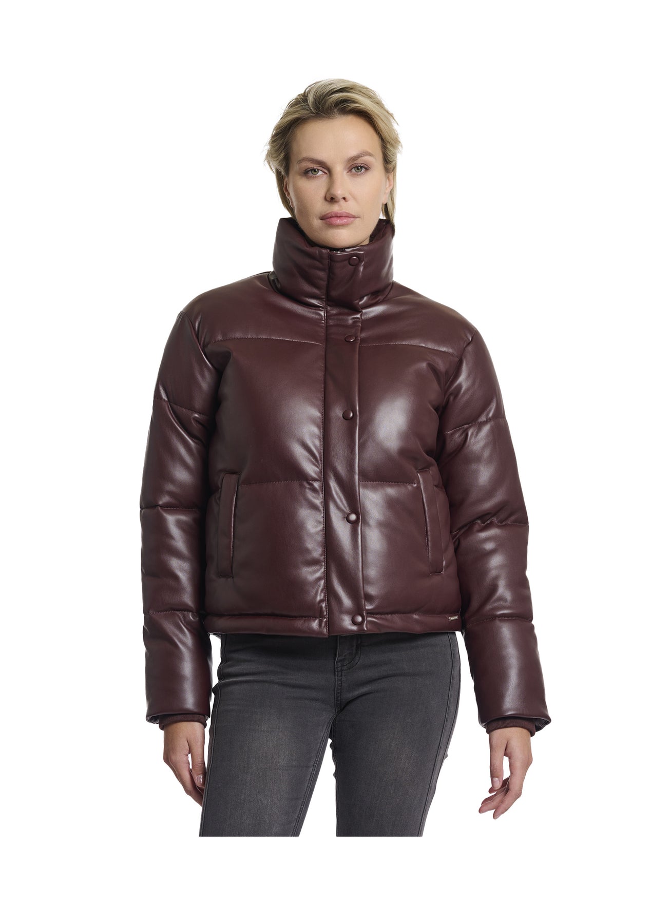 Giacca ISE effetto piumino LUCIDO, con chiusura a zip e bottoni a scomparsa.