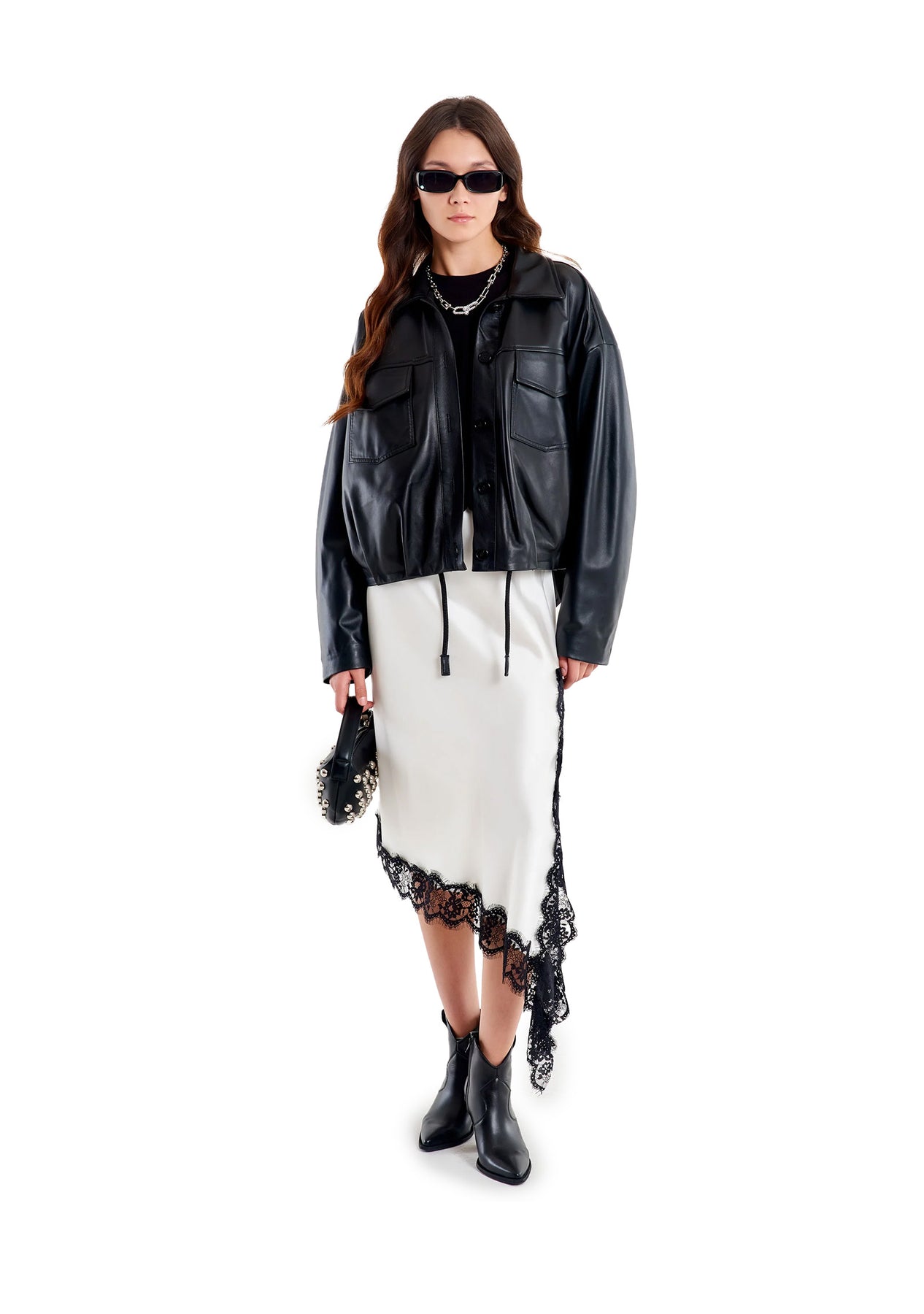 La modella è alta 178 cm ed indossa la taglia S.