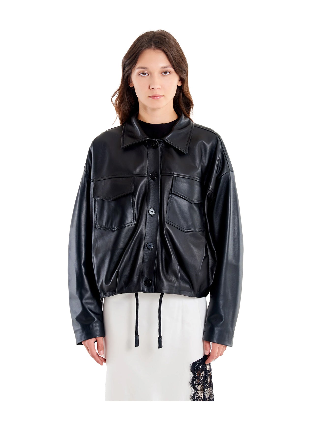 Bomber corto con colletto e maniche lunghe.