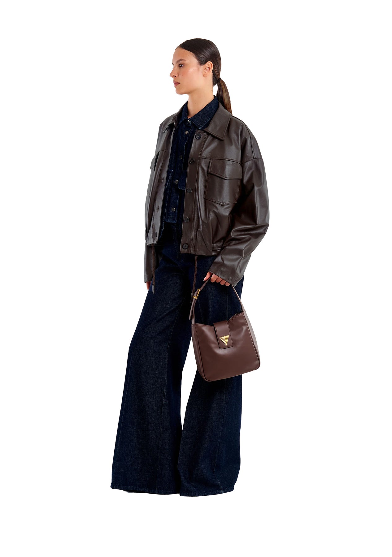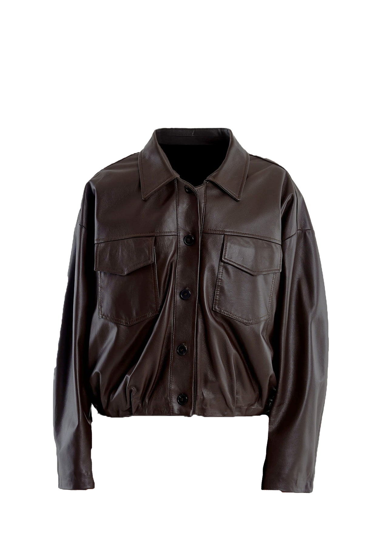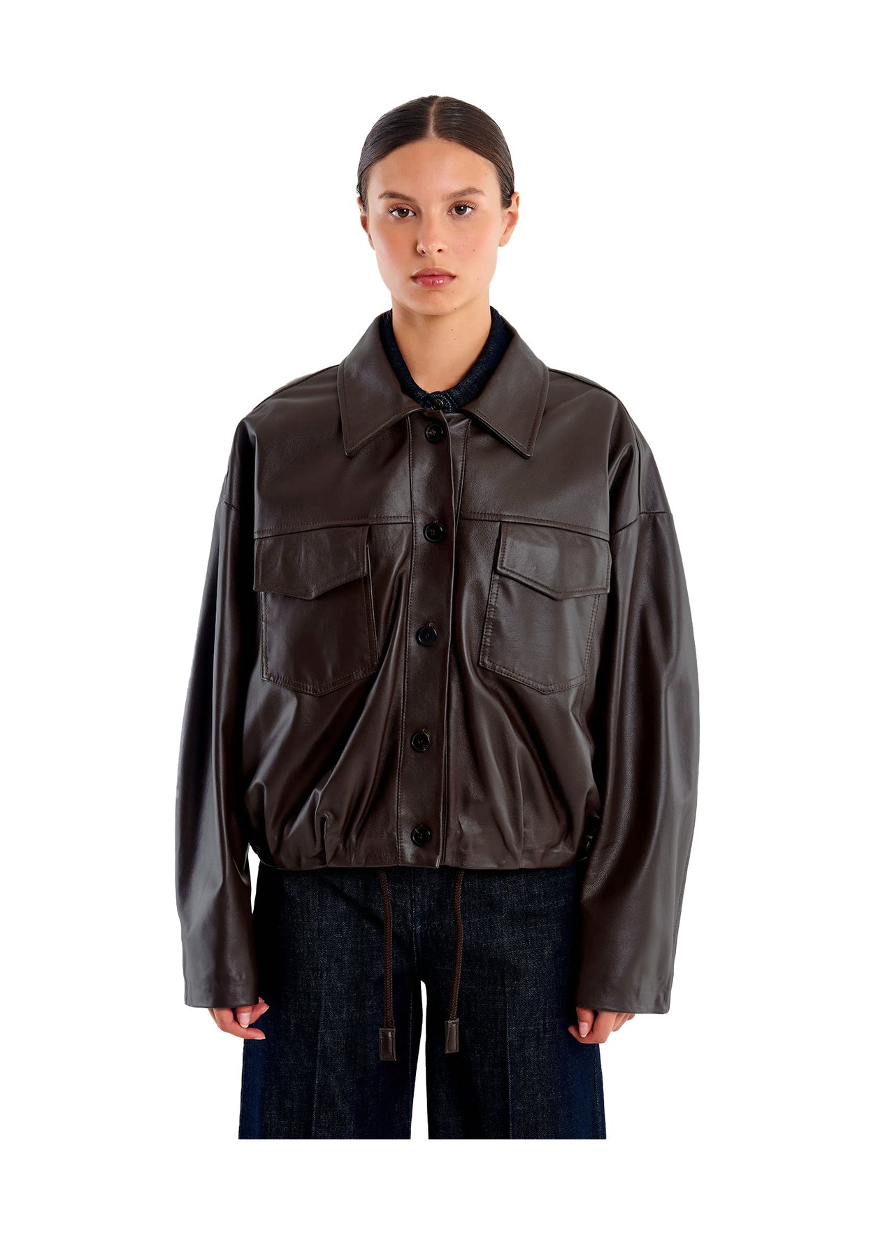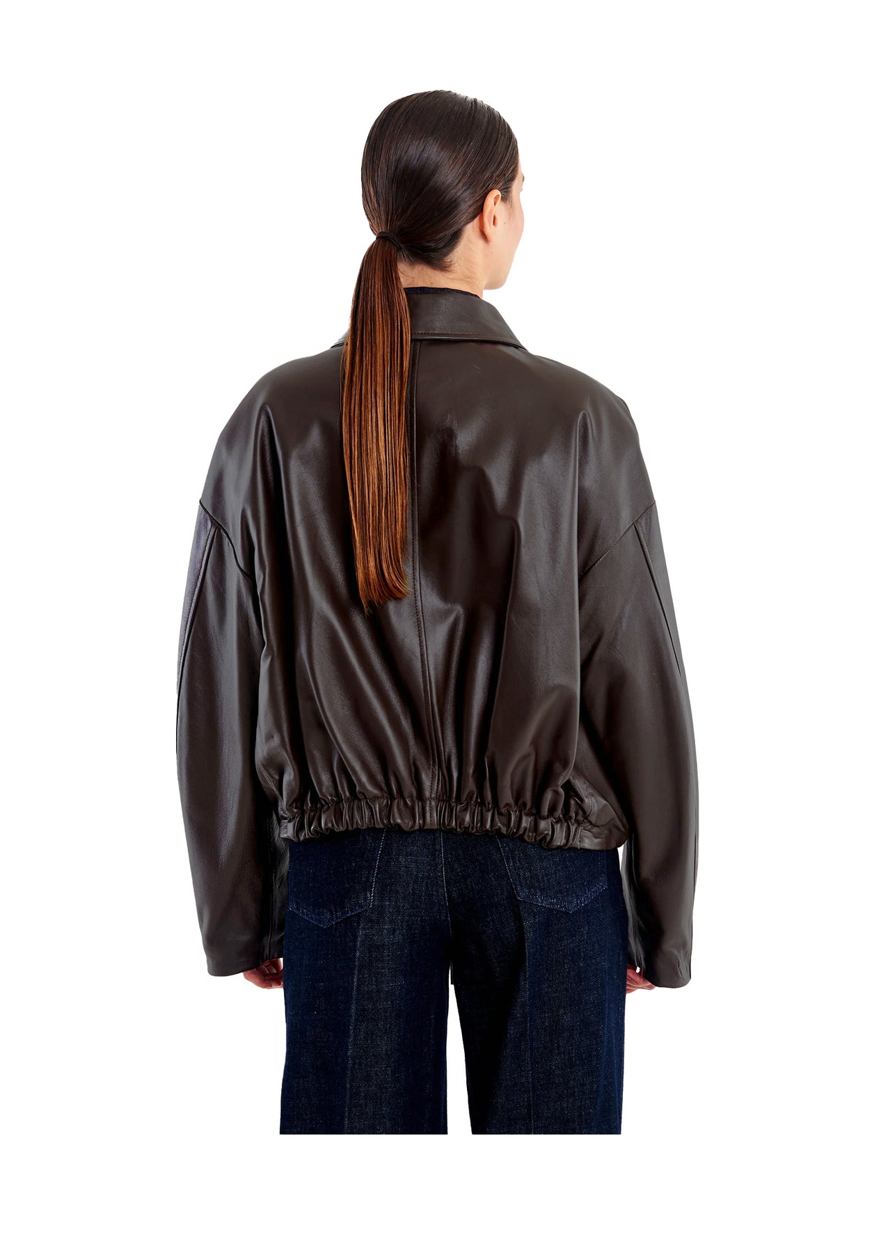 VICOLO Giacca Donna in Vera Pelle Bomber FONDENTE