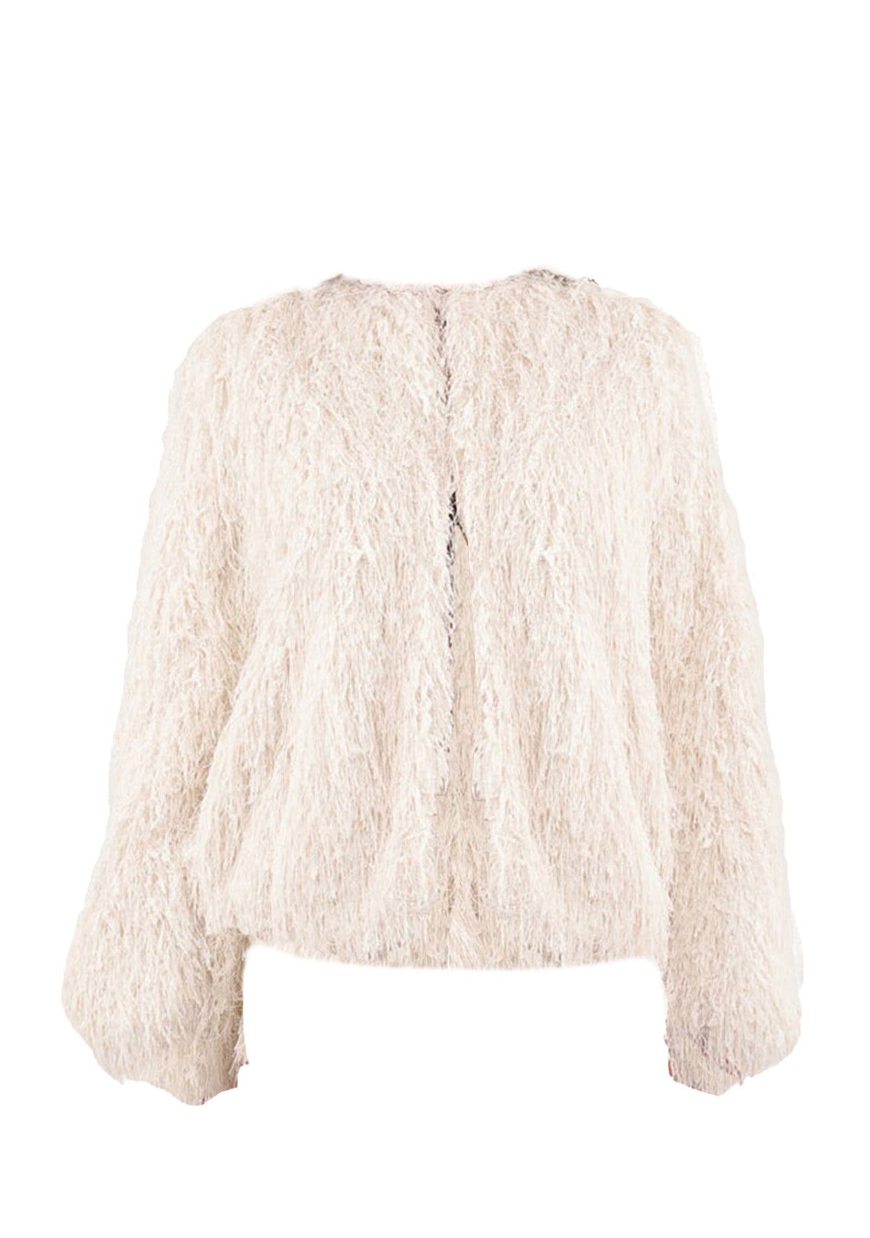 Giacca in eco pelliccia con filamenti laminati.