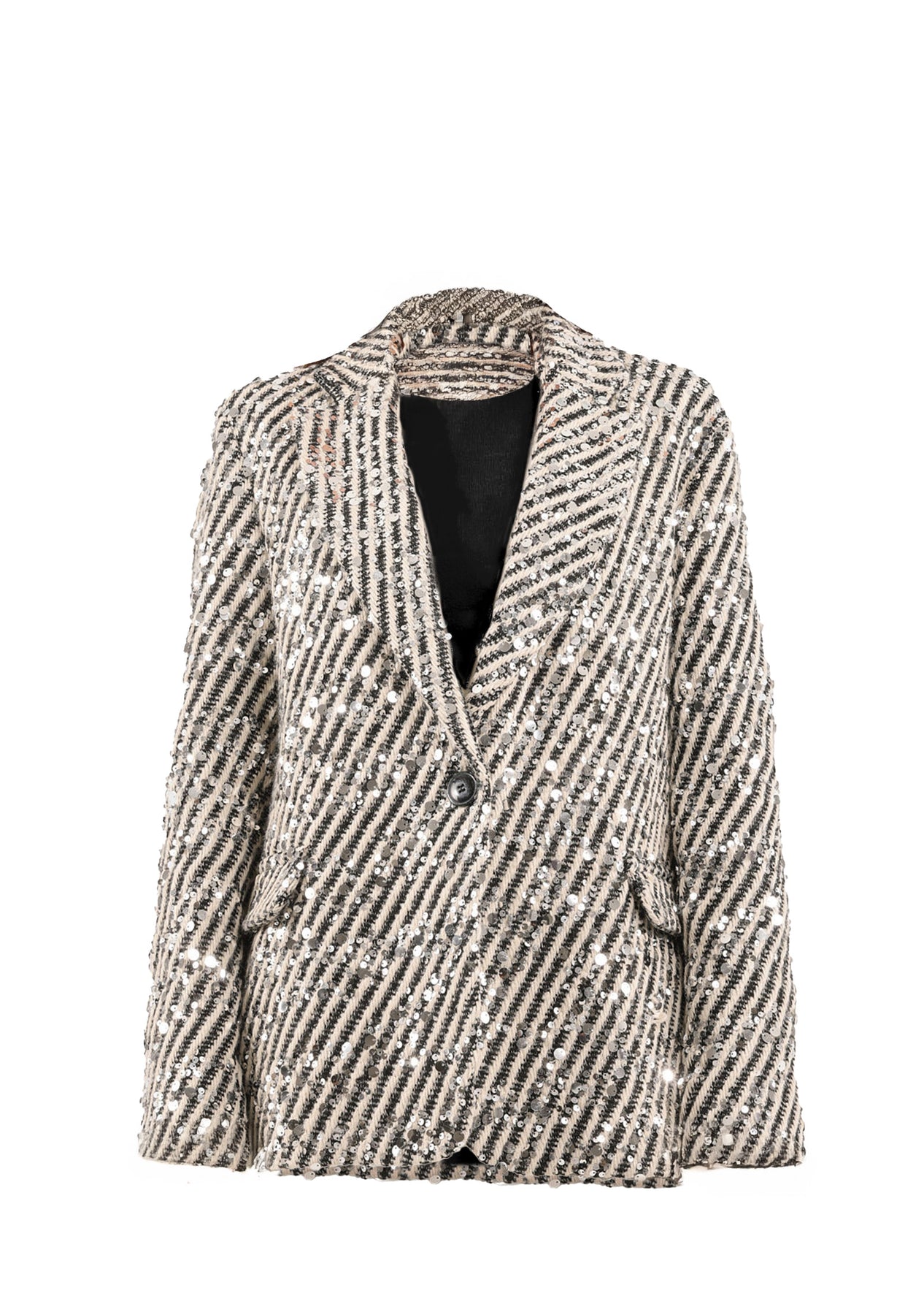 Giacca Cappotto con paillettes e tramatura diagonale effetto lana,