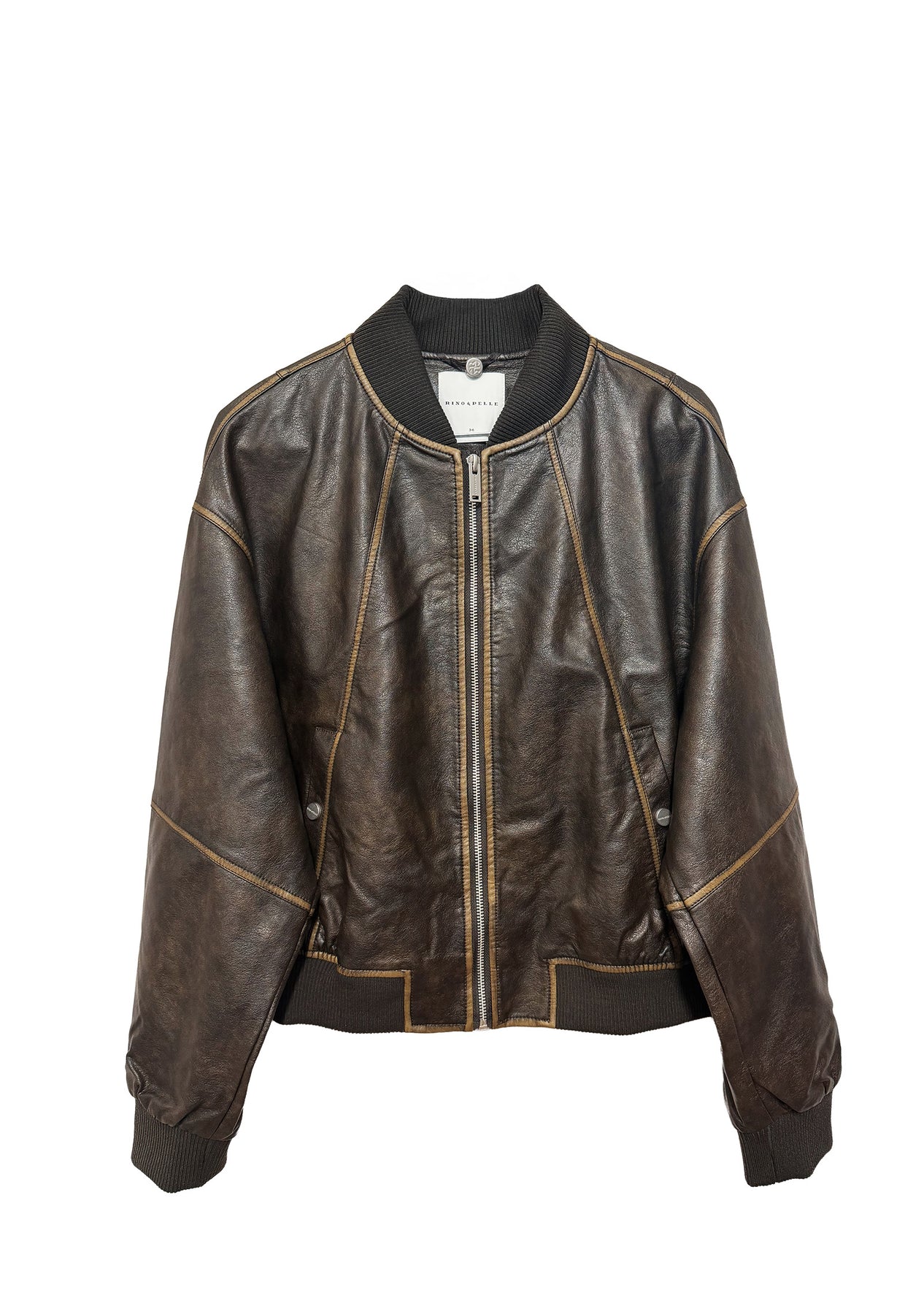 e classici elastici a coste sui polsini e sul colletto, cattura l'essenza dello stile collegiale e biker.