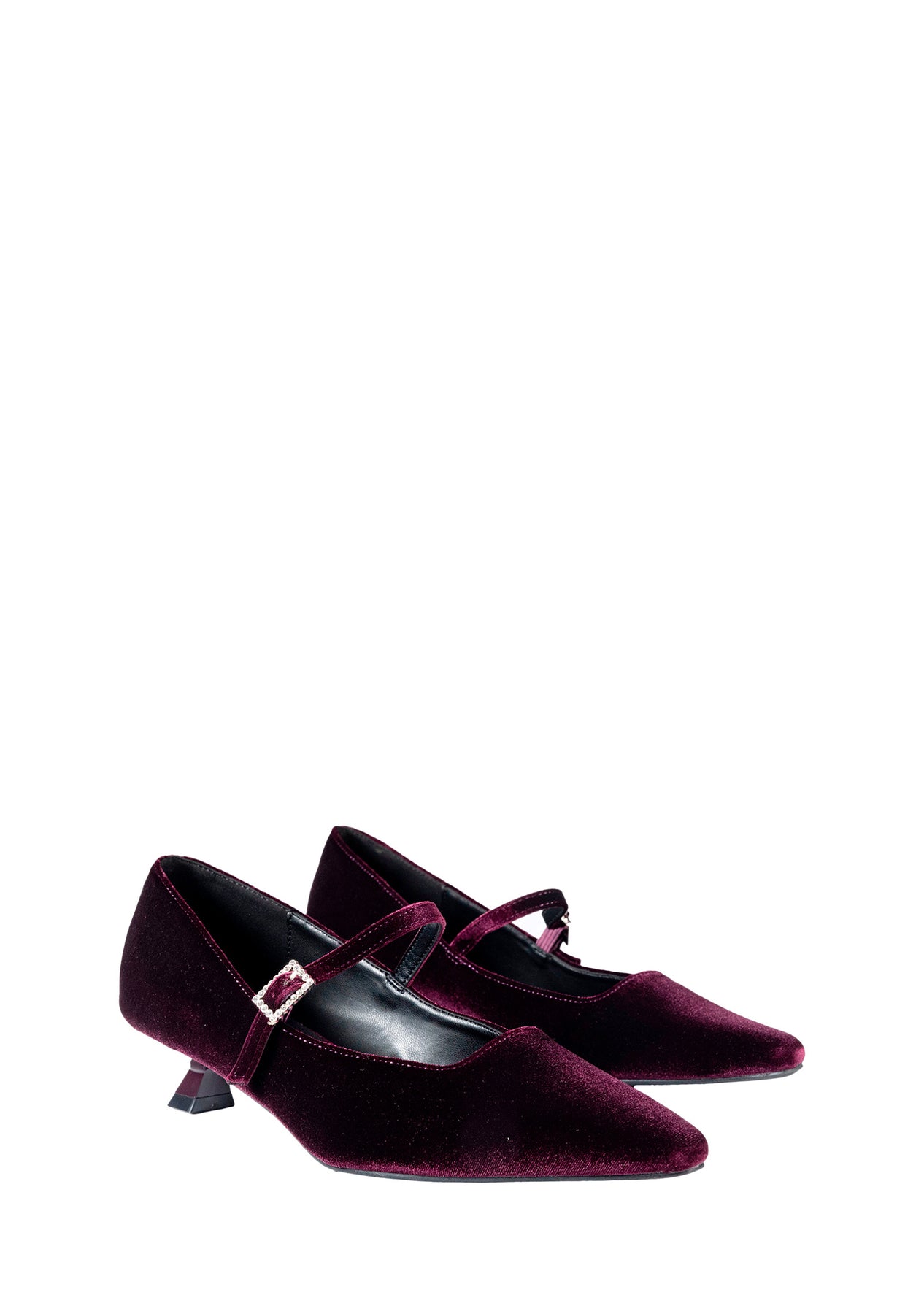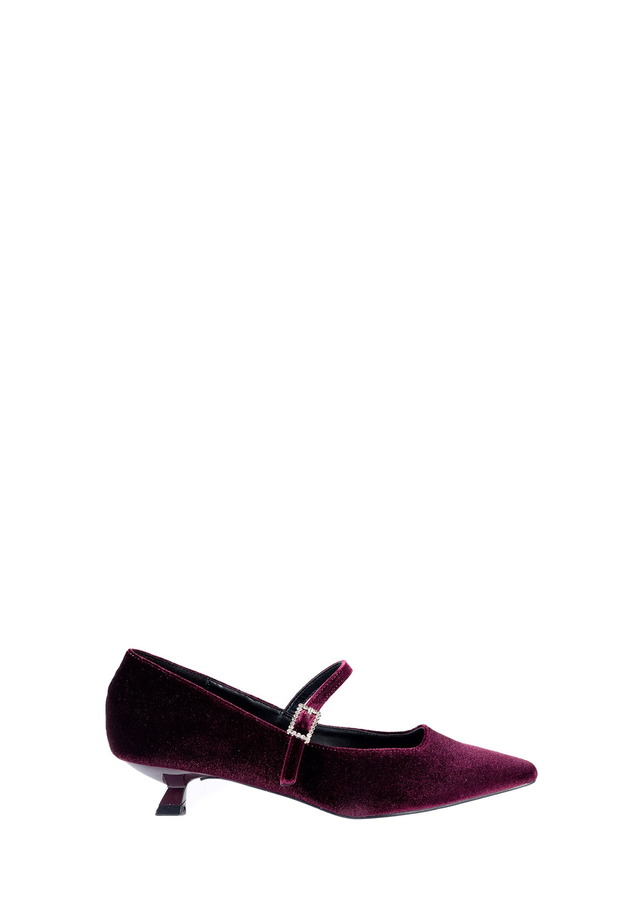 MC2020 Ballerina Donna Mary Jane Jewel con Tacco VELLUTO VINACCIA