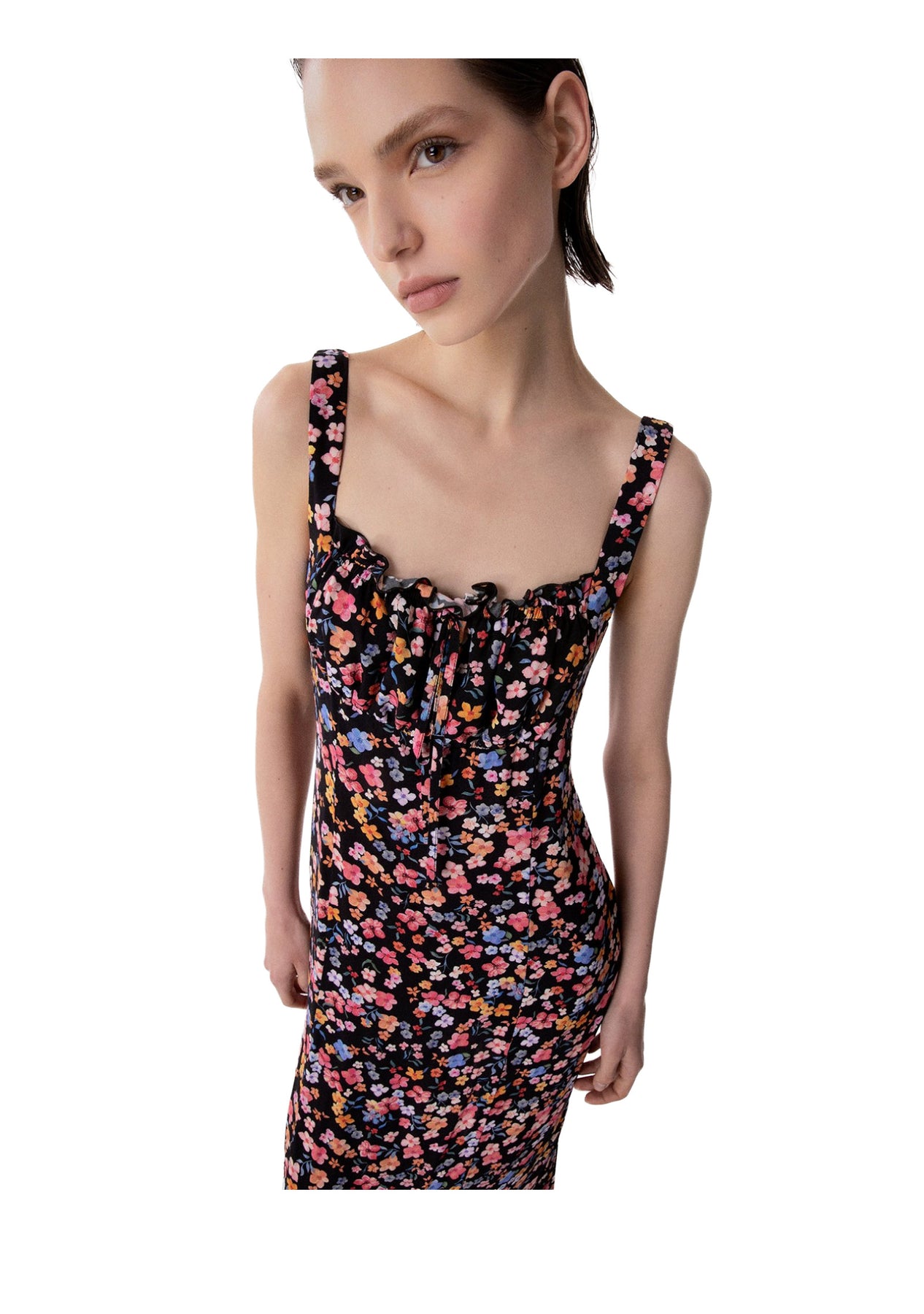 MAR DE MARGARITAS Abito Donna Megan Lungo Con Scollo Squadrato BOUQUET NERO