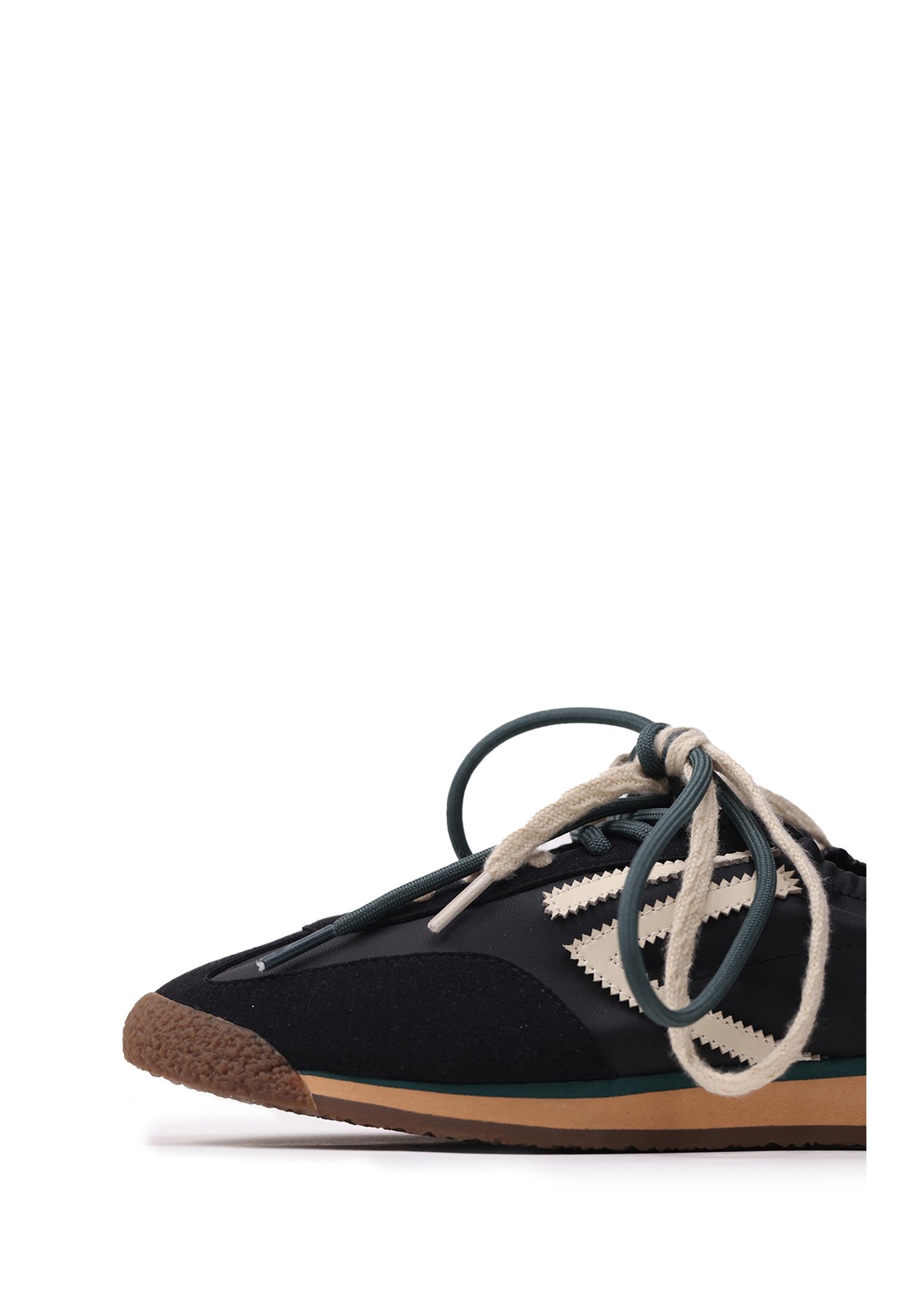 Sneaker in tessuto tecnico con inserti effetto scamosciato, stile vintage.