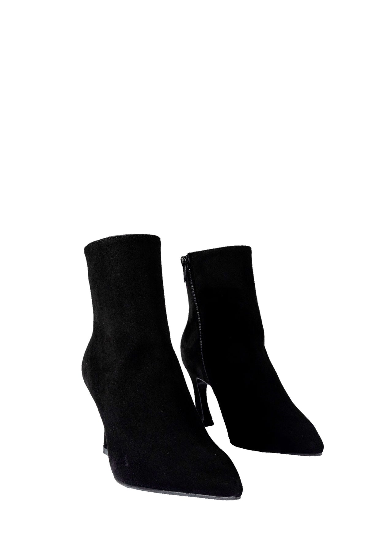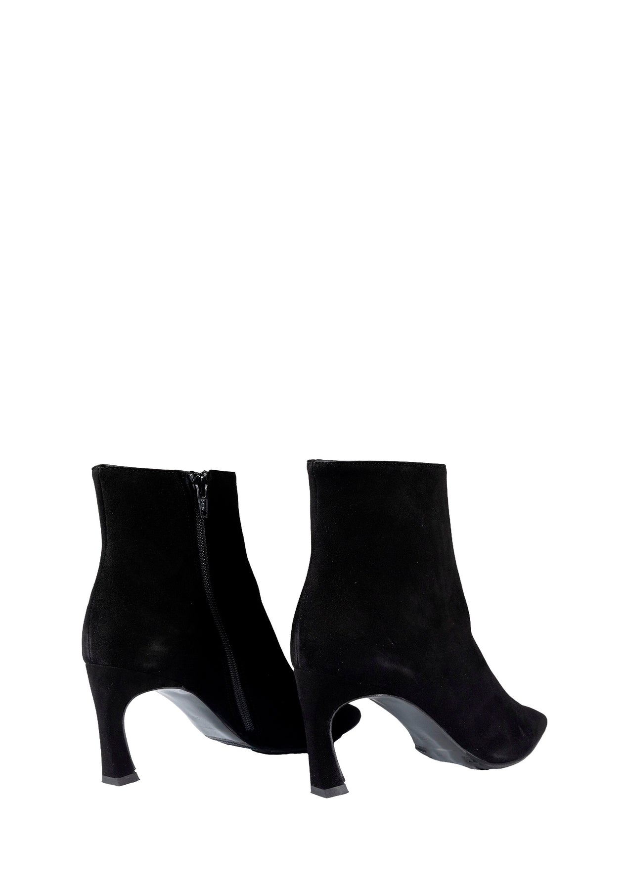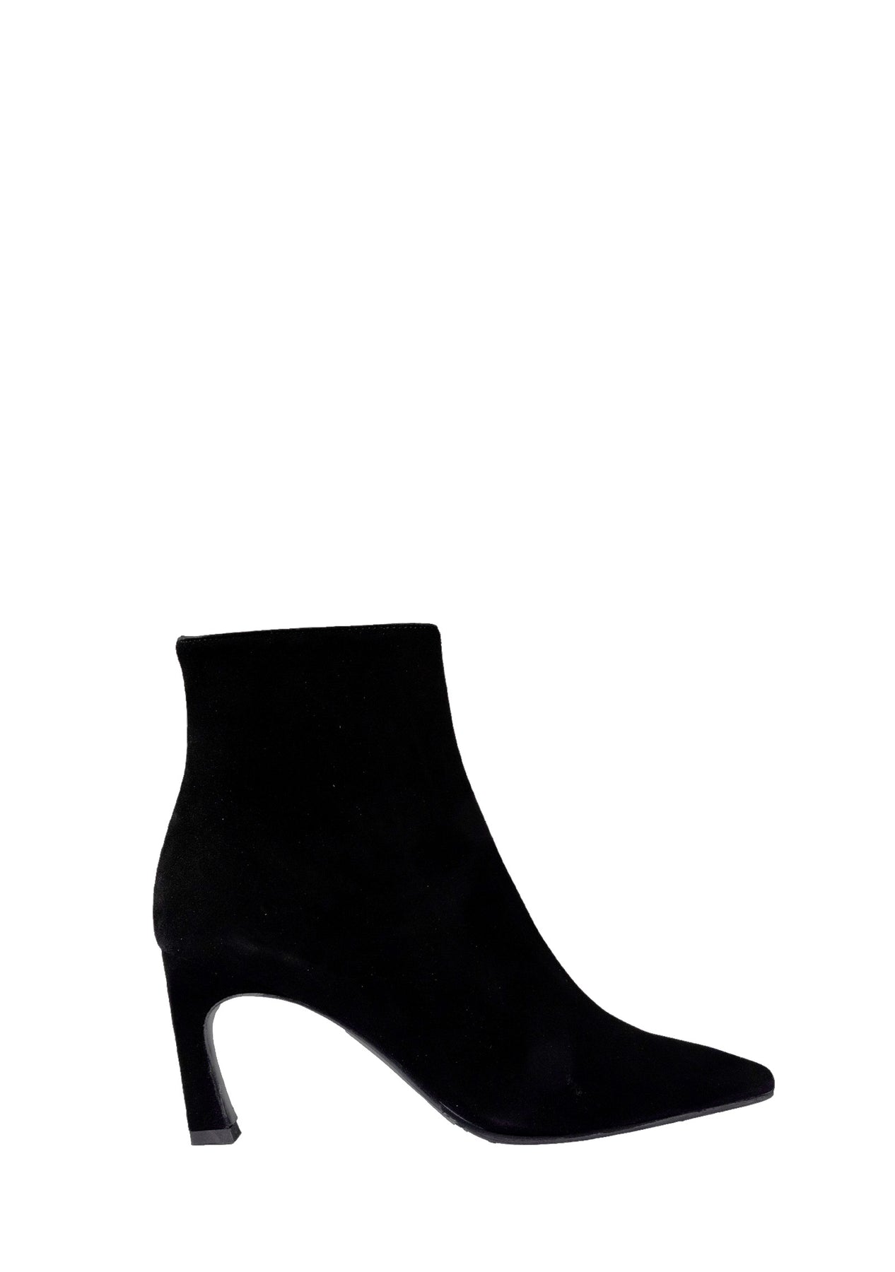 Tronchetto con zip laterale, punta affusolata e tacco a campana.