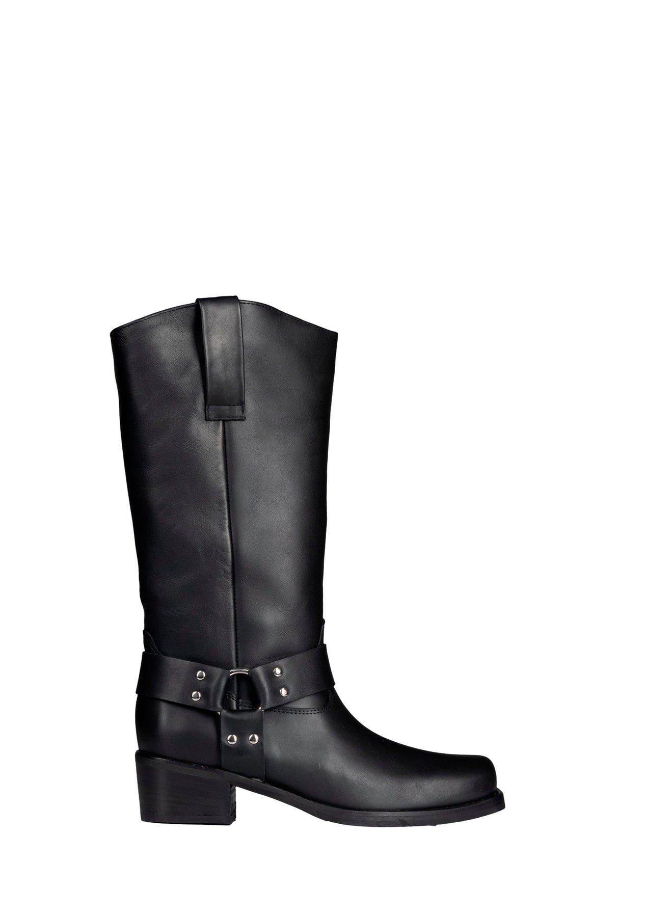 MC2020 Stivale Donna Biker Anello in pelle Nero