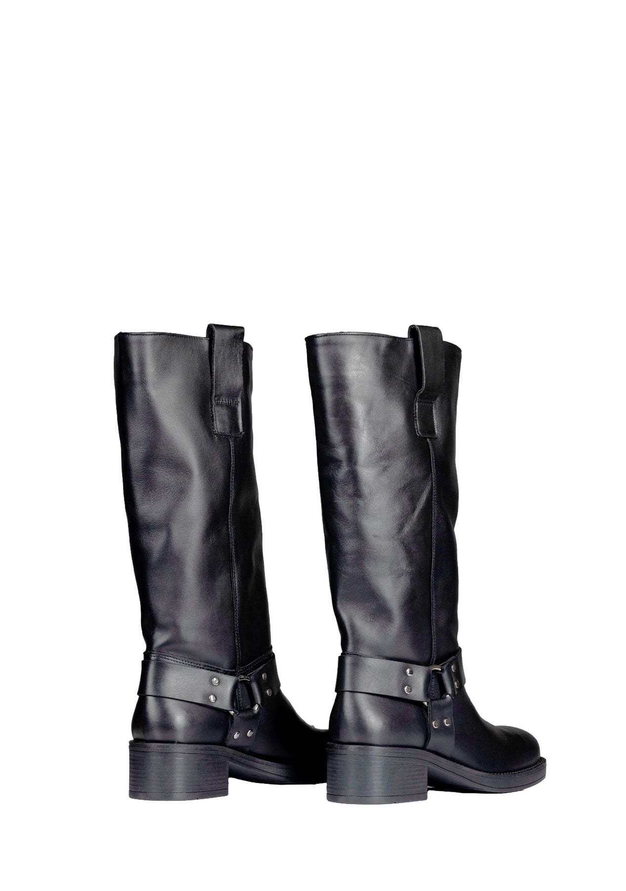Stivale modello biker in pelle con gambale squadrato.